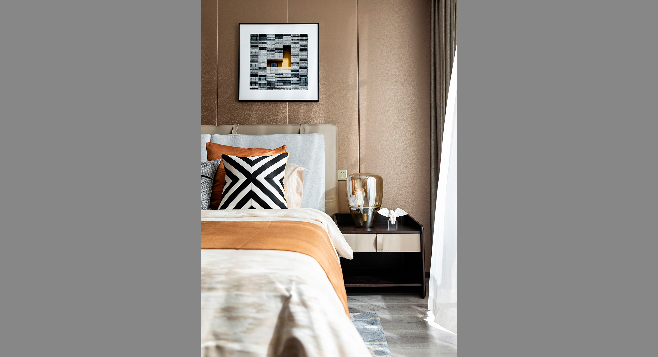 中交中央公园建筑立面采用ARTDECO的艺术风格,将典雅高贵的气质与都市新贵圈层的品味高度契合。追求线条感与力度,彰显自身建筑个性的同时又注重与环境的协调。并采用高档外墙砖,由三色拼砖搭配出棕黄的时尚色调,打造出独特、别致的建筑外墙。